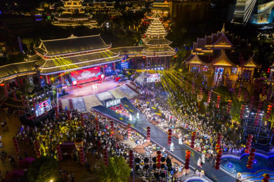 穿過雕梁畫棟的非遺文化小鎮,仰可摘星辰的“神州塔”內演繹著白娘子禁錮雷峰塔的故事,游客正展開一場令人窒息的冒險。“千古風華”項目中,游客通過沉浸式的立體影像,體驗飛進《千里江山圖》等名畫的樂趣,“觸摸”真實的歷史畫卷。戴上立體眼鏡,乘坐動感軌道車,身臨其境地穿梭在神話世界、上古王國……41個特色鮮明的室內外主題游樂項目、200余個休閑景觀項目,獨特的文化創意和沉浸式體驗吸引了140多萬人次游客前來打卡。