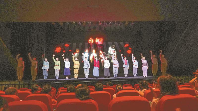 尾聲主題音樂響起時,臺上倒下的巾幗英雄們一個個站起來,身后屏幕上出現她們真實的歷史照片,我的淚水再也抑制不住了。抹眼淚的同時,我往四周掃了一圈,發現同樣被打動的人還不少。