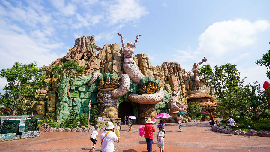 開園首日,大批游客進入綿陽方特游玩體驗。《女媧補天》《伴你飛翔》《梁祝》《哪吒鬧海》等眾多老少皆宜的文化高科技主題項目成為廣大游客的熱門選擇。