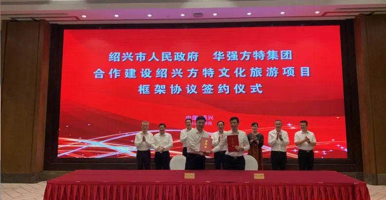 9月29日,紹興市人民政府與華強方特集團關于合作建設紹興方特文化旅游項目協議簽約儀式在紹興舉行。紹興市委書記馬衛光,華強方特集團總裁劉道強等領導嘉賓出席簽約儀式并講話,紹興市委副書記、市長盛閱春致辭。