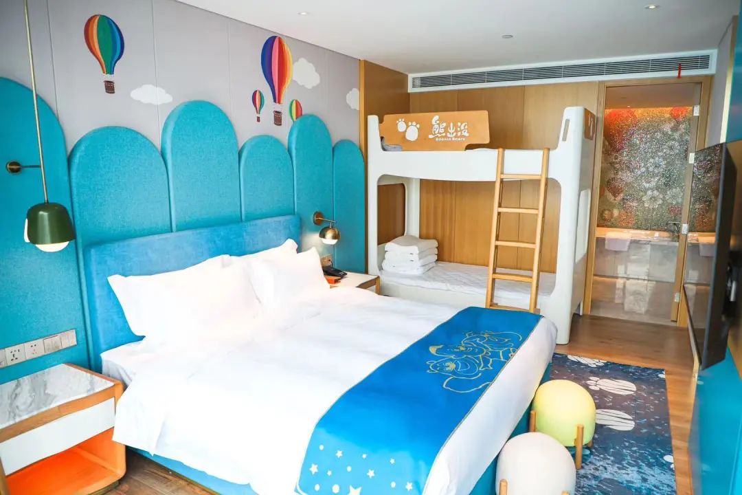 今年4月,全球首家熊出沒(méi)酒店落戶天津,酒店將國(guó)際先進(jìn)設(shè)計(jì)理念與熊出沒(méi)元素相融合,4萬(wàn)平方米面積內(nèi)設(shè)有299間風(fēng)格各異的特色客房與兒童娛樂(lè)區(qū)、spa房、健身房等娛樂(lè)設(shè)施,滿足不同游客度假、消費(fèi)、會(huì)議、休閑的多樣化需求。