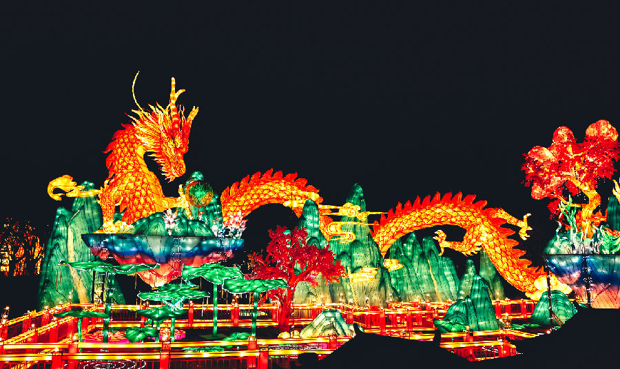 正逢甲辰龍年,各園區創意打造巨型花燈、璀璨焰火、無人機大秀等“龍”主題的光影盛宴。