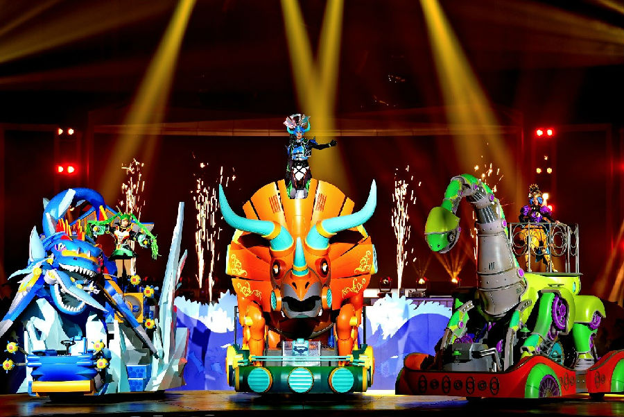 自貢方特三大“機甲恐龍”花車震撼上新,廈門方特也將上演恢弘大氣的千人漢服巡游;邯鄲方特“漢服游園會”“九曲燈游會”帶游客領略夜色古邯鄲的光影繁華;贛州方特則以舞獅、戰鼓、篝火、巡游等活動為游客新年祈福。