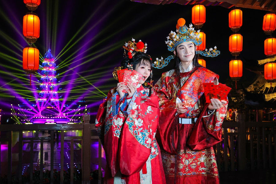 天津方特“新哏兒都廟會”熱鬧開市,看巨型龍燈、逛年味市集、賞民俗雜技、品津門小吃精彩紛呈;徐州方特推出“大風歌?漢韻集市”,海納各地美食小吃及精美文創;鄭州方特雙園開啟新春狂歡,寫福字、印年畫、新春舞獅、絳州鼓樂民俗薈萃,花車巡游、新春開園秀、龍王賀歲、蹦迪狂歡派對輪番上演。