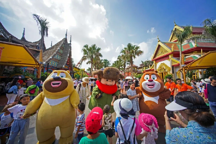 據了解,方特東盟神畫于今年8月8日正式開園迎客,創造性地運用現代科技,賦予東南亞傳統文化和自然風光以全新表現力。將東盟十國傳統歷史文化資源和優美的自然風光,與360°環幕劇場、幻影成像劇場、立體式跟蹤電影、魔球表演劇場等國際一流水準的高科技主題樂園設施有機結合,呈現出《塔鑾盛典》《萬塔之城》《拉瑪傳奇》《千島之歌》等11個具有強烈感染力和故事性的主題游樂項目,打造獨具東南亞特色的主題樂園,實現不出國門一日游遍東南亞的休閑游樂新體驗。