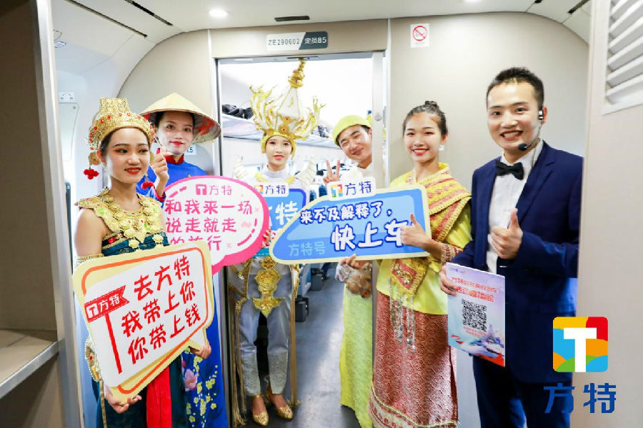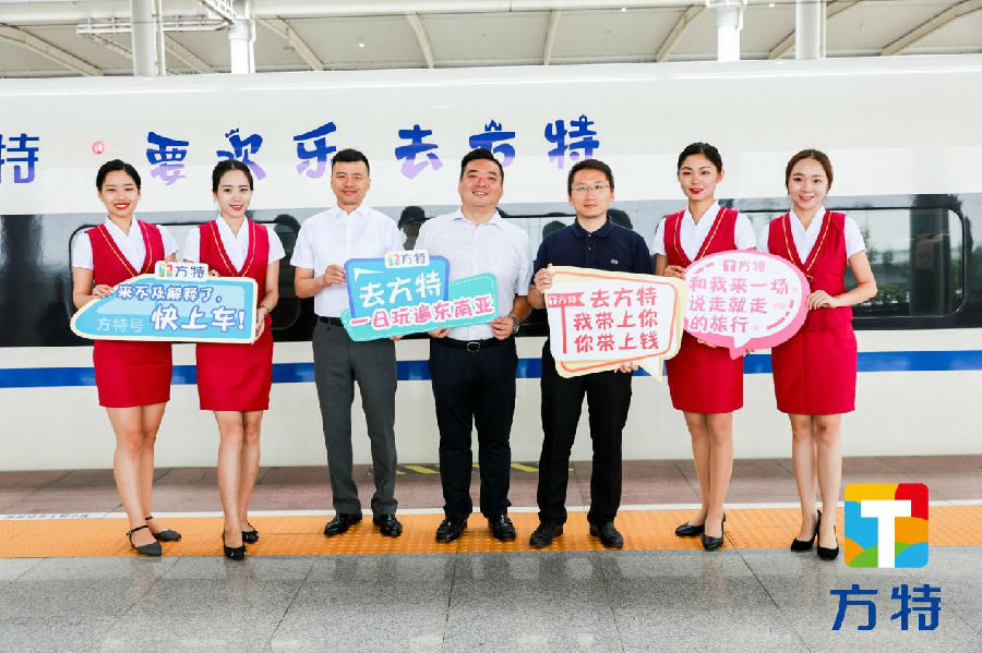 5月30日,華強方特冠名的“方特號”G422次動車組發車儀式在南寧東站舉行,此次發車儀式以“一日打卡東南亞”為主題,旨在向廣大旅客介紹南寧方特東盟神畫的歡樂理念。G422動車組從南寧東始發后,途經株洲西、長沙南、鄭州東等站點后,最終抵達北京西站。