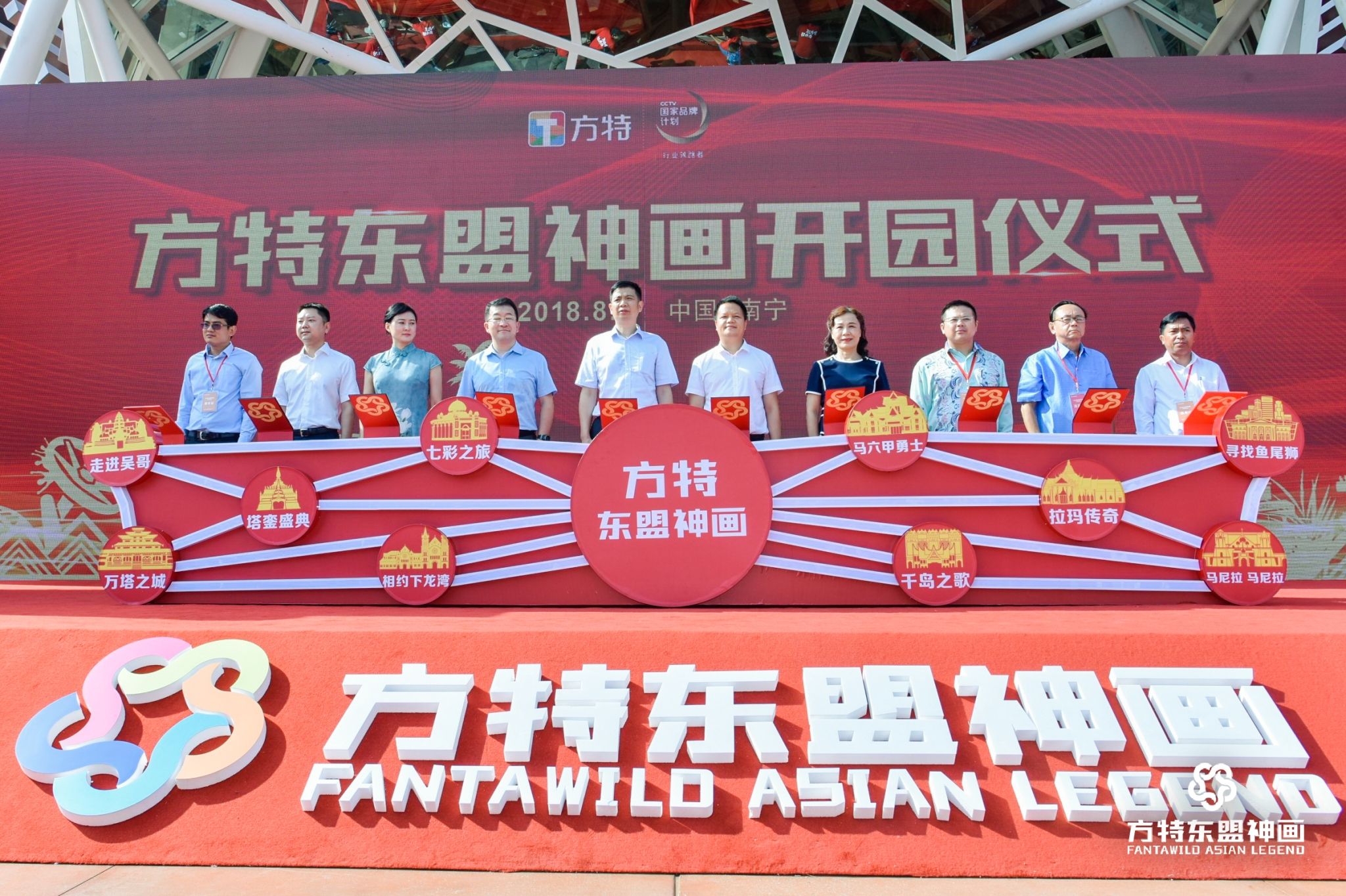??8月8日,南寧方特東盟神畫主題樂園盛大開園。南寧青秀山風(fēng)景名勝旅游區(qū)管理委員會主任藍飛、南寧市旅游發(fā)展委員會副主任林慧超、??????????馬來西亞駐南寧總領(lǐng)事館總領(lǐng)事黃奕瑞、泰王國駐南寧總領(lǐng)事館總領(lǐng)事蔡樂蓬蒂窩拉衛(wèi)、柬埔寨王國駐南寧總領(lǐng)事館領(lǐng)事..