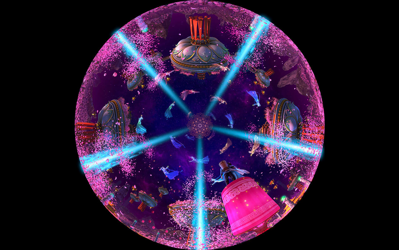 《牛郎織女》項(xiàng)目作為室內(nèi)升降式穹頂影片的代表。使用真人實(shí)拍結(jié)合三維的形式,重新演繹經(jīng)典愛(ài)情神話(huà)傳說(shuō)“七夕鵲橋戀”。重點(diǎn)展現(xiàn)了牛郎飛上天庭尋妻,與織女鵲橋相會(huì)的情節(jié),并將其打造成為一個(gè)恢弘絢麗的魔幻歷險(xiǎn)題材主題項(xiàng)目。